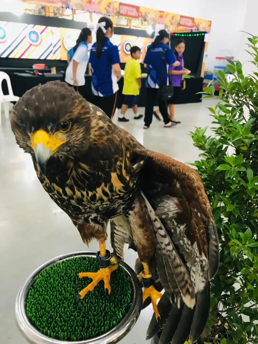 การนำสัตว์นั้นมาที่นี่เพื่อให้เด็กๆนั้นได้มองและเห็นสัตว์โลกที่ปกติแล้วเราจะหาดูเขายาก โดยธรรมชาติแล้วเจ้าเหยี่ยวหากว่ามีแม่ไก่มีลูก หาอาหารอยู่กลางทุ่งนา เจ้าเหยี่ยวนั้นจะบินวนหาช่วงจังหวะในการที่จะลงมาจับเจ้าไก่น้อยนั้นไปเป็นอาหาร