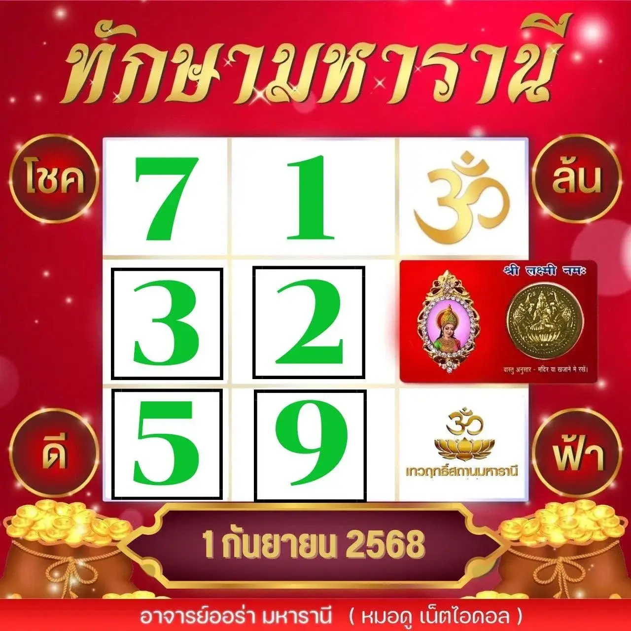 หวยรัฐบาลไทย ชุด 2 ตัว 3 ตัวบนและล่าง หวยเด็ดเลขเด็ดงวด 1 กันยายน 2568