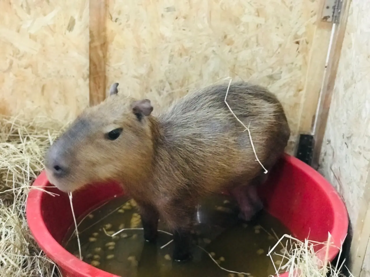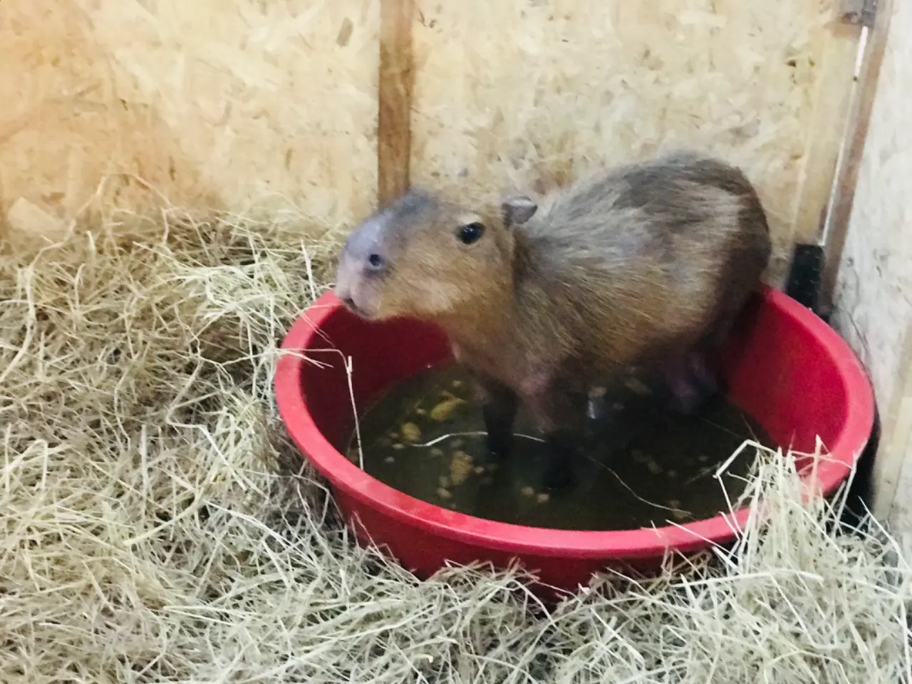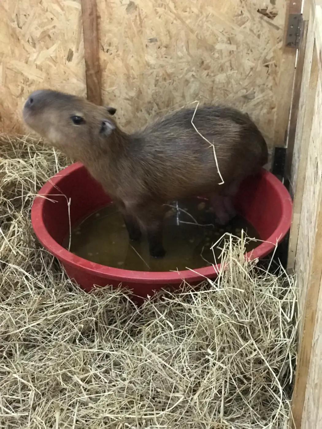 ดูแล้วน่ารักในส่วนของปากเจ้าคาปิบาร่า ส่วนในตัวนั้นอาจจะไม่ค่อยตัวใหญ่ กลมๆ เจ้าตัวนี้เหมือนว่าขาของมันนั้นหายไปจากเดิมมีสี่ขาแต่เห็นสามขา เรานั้นไม่ได้สังเกตอะไรแต่ดูว่ามันซ่อนขาไหมในตอนที่กำลังทำธุระในอ่างน้ำ คงจะชอบในส่วนของการเล่นน้ำแล้วก็ถ่ายใส่เลย