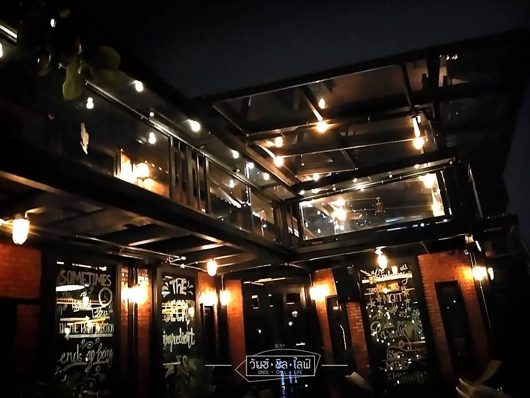ร้านนี้ตกแต่งสไตล์ลอฟต์ เน้นโครงสร้าง เปลือยผนัง และมี Rooftopพื้นกระจกที่แปลกแหวกแนว มีโซนทั้ง Indoor ติดแอร์เบาะหนังนุ่ม เรโทร หรือ Outdoor ริมน้ำสุดแสนจะชิล โรแมนติก สัมผัสธรรมชาติ มองฟ้า ดูดาวฟินกัน
