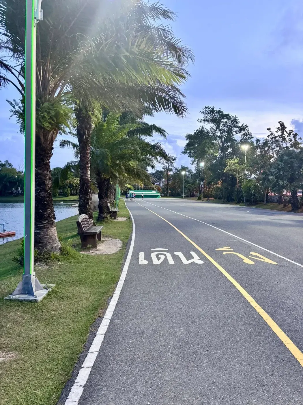 เส้นทางตรงที่มุ่งไปด้านหน้า เริ่มในการวิ่ง ในตอนเช้านั้นเราไม่ต้องกลัวเลยว่าการที่เรานั้นออกไปวิ่ง จะน่ากลัว เพราะพอเรานั้นไปวิ่งคนเยอะมาก ไม่ว่าจะเป็นในส่วนของวัยรุ่น วัยทำงาน ไปจนถึงวัยสาวเหลือน้อย ที่พากันมาออกกำลังกาย สามารถที่จะเลือกในการออกกำลังกายได้ เต้นไทเก๊กนั้นสำหรับคุณตาคุณยาย แอรโรบิคนั้นสำหรับทุกวัย เราเองนั้นเลือกที่จะวิ่งรอบสถานที่บริเวณขุมน้ำ สายน้ำท้องฟัาที่เริ่มแสงของวันใหม่นั้นสวยงามมาก