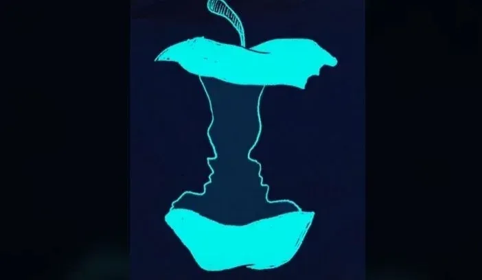 ภาพดังกล่าว บางท่านเมื่อมองแล้วอาจเห็นเป็น “ใบหน้าคนสองคน” ในขณะที่บางท่านอาจเห็นเป็น “แอปเปิ้ล” ก่อน ซึ่งคำตอบที่เราเห็นเป็นสิ่งแรกนั้น เขาว่าสามารถสะท้อนบุคลิกบางอย่างของเราได้อย่างน่าสนใจทีเดียวค่ะ