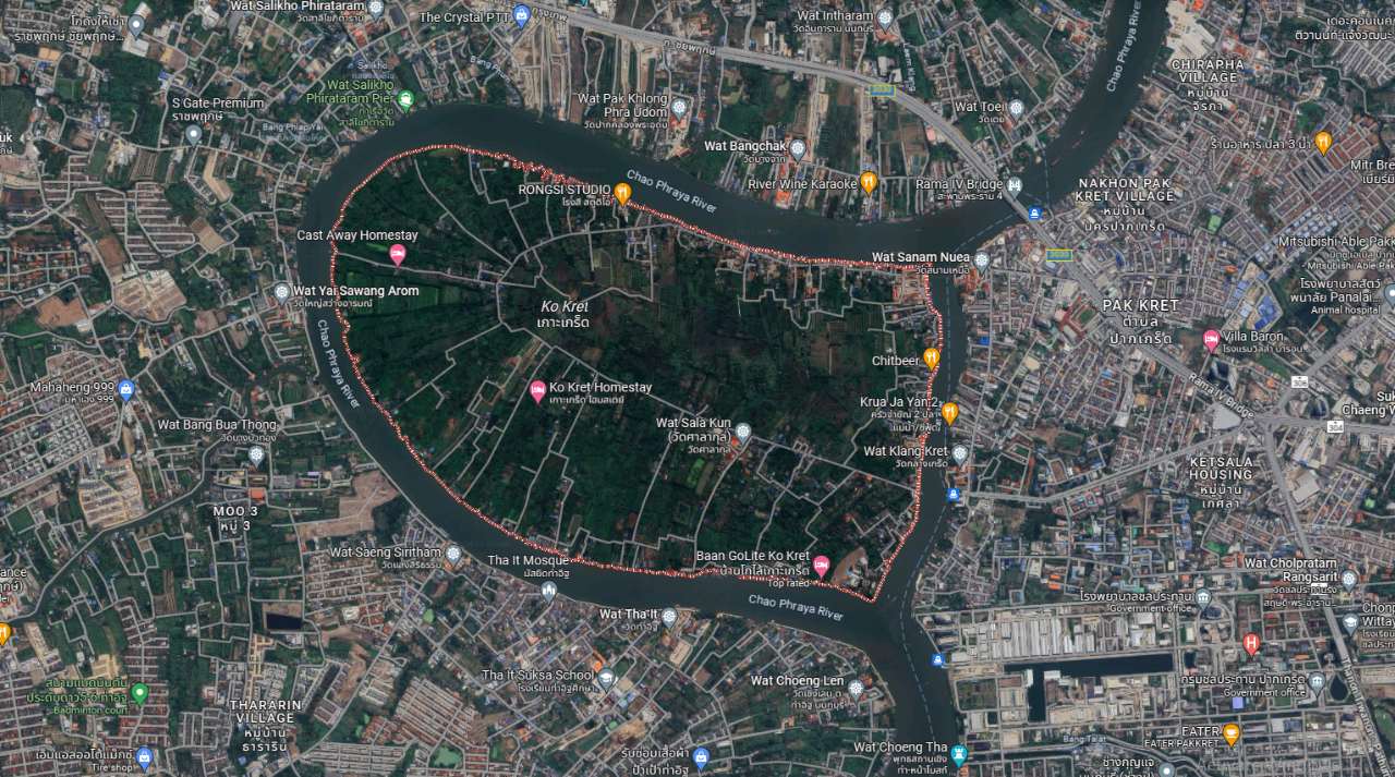 เป็นเกาะกลางแม่น้ำเจ้าพระยา ตั้งอยู่ในเขตอำเภอปากเกร็ด จังหวัดนนทบุรี