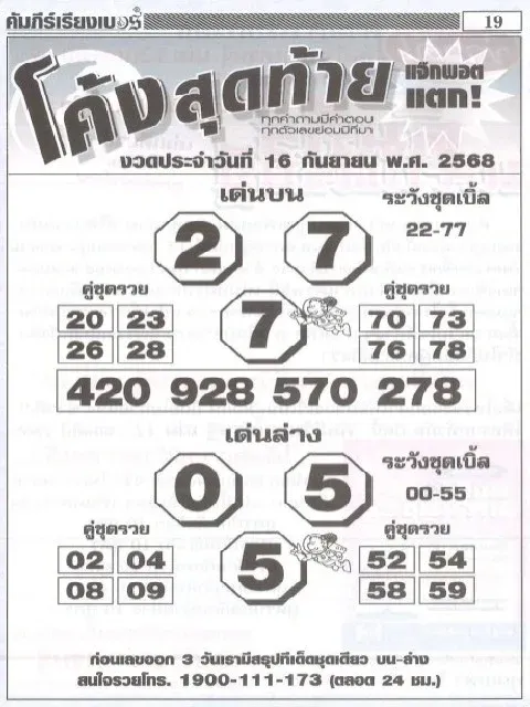 เลขเด็ด เลขมาเเรง เลขดัง "รวมหวยเด็ดสำนักดัง vol.8" งวดวันที่ 16 กันยายน 2568