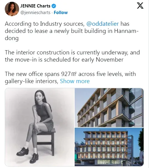อาคารสำนักงานสุดหรูที่ว่า ตั้งอยู่ในย่านฮันนัมดง ในกรุงโซล ซึ่งสำนักงานหรูในย่านนี้ขึ้นชื่อว่าแพงมหาศาลทุกหลังเพราะเป็นย่านของคนรวย โดยออฟฟิศหลังใหม่นี้ ออกแบบโดยสถาปนิกชื่อดัง ฮงแทซอน เป็นอาคารสูง 5 ชั้นรวมชั้นใต้ดิน มีพื้นที่ใช้สอยเกือบ 1,000 ตารางเมตร และมีดาดฟ้าที่สามารถมองเห็นวิวแม่น้ำฮันได้อย่างชัดเจน โดย เจนนี่ Blackpink ได้จ่ายเงินเป็นค่ามัดจำอาคารหรูดังกล่าวที่ราคา 2.5 พันล้านวอน (ประมาณ 69 ล้านบาท) นอกจากนั้น เจนนี่ ยังต้องจ่ายค่าเช่าอาคารหรูดังกล่าวอีกเดือนละ 80 ล้านวอน (ประมาณ 2.2 ล้านบาท) ซึ่งอาคารหรูแห่งนี้จะกลายเป็นตึกสำนักงานใหม่ของ บริษัท ODD ATELIER (OA) เนื่องจากสัญญาเช่าที่เก่าของเธอกำลังจะหมดลง ซึ่งมีกำหนดเปิดตึกสำนักงานใหม่ในเดือนพฤศจิกายนนี้