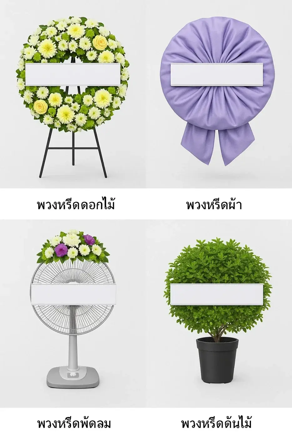 - พวงหรีดพัดลม: เหมาะสำหรับการให้ความรู้สึกสดชื่น