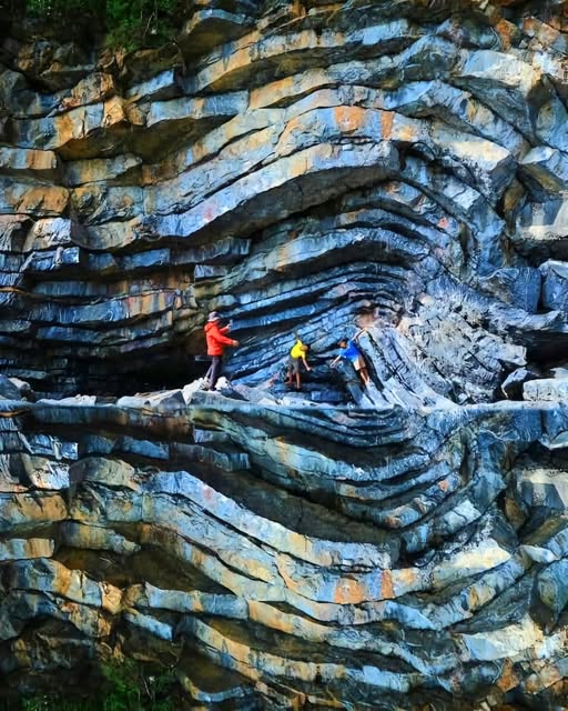 เบื้องหลังความงามนี้เกิดจาก “กระบวนการหินตะกอน” (Sedimentary Process) ที่ใช้เวลานับล้านปี เริ่มจากการตกตะกอนของหินที่มีองค์ประกอบและความแข็งต่างกันทับถมกันในท้องทะเล เมื่อเปลือกโลกเกิดการเอียงและยกตัวขึ้นมา ชั้นหินเหล่านั้นจึงเผยโฉมเป็นหน้าผา ขณะเดียวกันกระแสน้ำและแรงลมได้กัดเซาะหินส่วนที่อ่อนกว่าออกไป เหลือไว้แต่ชั้นหินที่แข็งแรงทนทาน จนกลายเป็นลวดลายพับซ้อนอย่างที่เห็นในปัจจุบัน