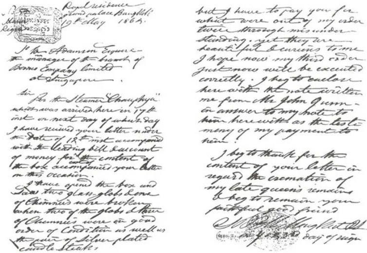 จากบทความเรื่อง “ลายมือ” และ “ลายเซ็น” ของรัชกาลที่ 4 กับอิทธิพลที่ส่งผลในภายหลัง ของเว็บไซต์ศิลปะวัฒนธรรม กล่าวถึงจุดเริ่มต้นของลายเซ็นในประเทศไทยความตอนหนึ่งว่า “...เนื่องจากพระบาทสมเด็จพระจอมเกล้าเจ้าอยู่หัวทรงมีพระสหายเป็นชาวต่างชาติ โดยเฉพาะชาวตะวันตกตั้งแต่ครั้งยังทรงผนวช ทรงเรียนภาษาอังกฤษจากมิชชันนารีอเมริกัน และภาษาละตินจากสังฆราช ปาเลกัวส์ พระองค์จึงทรงเขียนและอ่านภาษาอังกฤษได้อย่างเชี่ยวชาญ ทรงมีพระสหายชาวต่างชาติทั้งในประเทศและต่างประเทศ มีการโต้ตอบทางจดหมายด้วยลายพระหัตถ์ ซึ่งการเขียนจดหมายแบบตะวันตกต้องมีการลงท้ายด้วยชื่อผู้เขียน นี่จึงเป็นจุดเริ่มต้นของการลงพระปรมาภิไธย...