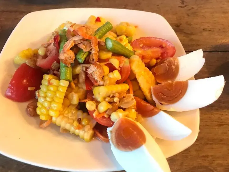 และตามด้วยเมนูหนักหน่อยคือตำไทยไข่เค็ม อาหารที่หลายคนนั้นไม่ทานปลาร้าทานกัน ถึงเครื่องมาก ร้านอาหารไหนอร่อยให้เรานั้นดูได้เลยว่าอร่อยอย่างไร คนในร้านนั้นจะแน่น และรถนั้นจะจอดเยอะ หากว่าพื้นที่ร้านนั้นไม่ใหญ่ จะมีคนนั้นรอคิวเยอะ หรือว่าเรานั้นอาจจะดูในส่วนของบิลในการขายของว่าเยอะหรือไม่ ถ้าหากว่าเยอะนั้นอร่อยแน่นอน