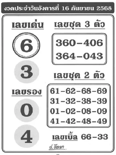 เลขเด็ด เลขมาเเรง เลขดัง "รวมหวยเด็ดสำนักดัง vol.11" งวดวันที่ 16 กันยายน 2568