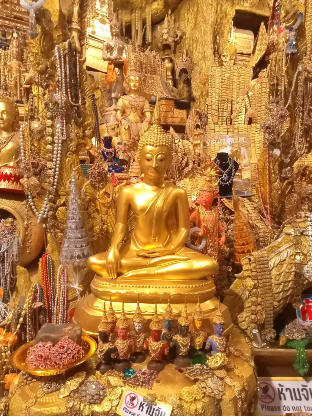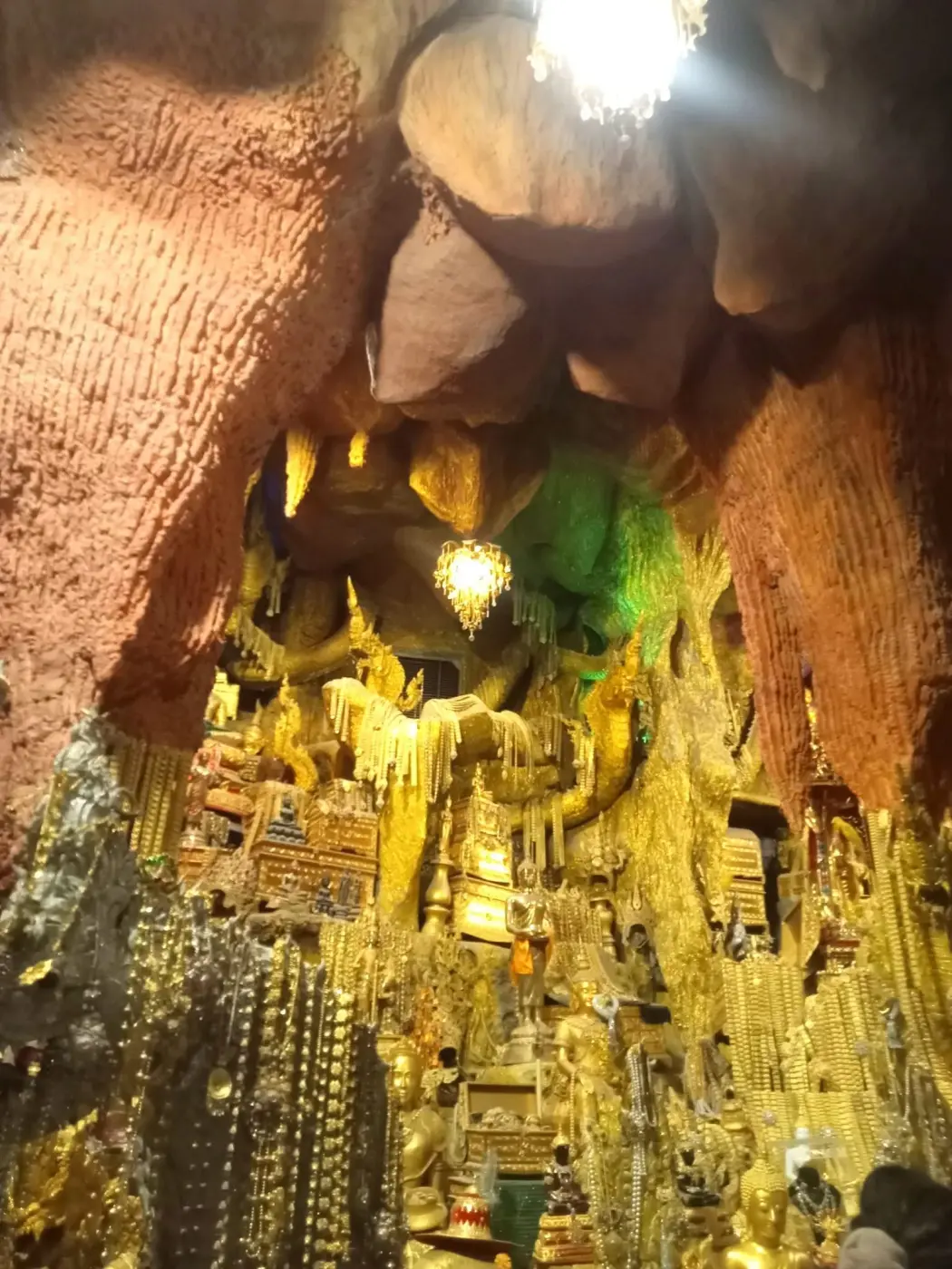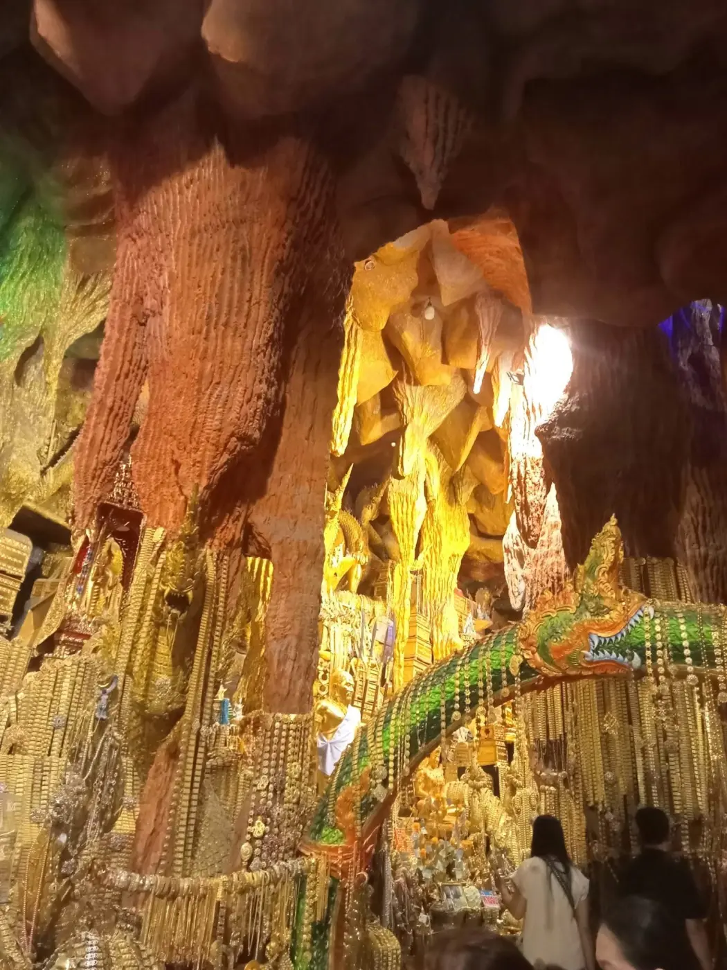 ในส่วนเส้นทางก่อนที่จะเข้าไปสู่แหล่งสมบัติมหาศาล เราจะเห็นก่อนคือเข็มขัดเงิน ทองนาก ที่ห้อยวางเรียงราย ถามว่าสวยไหม เยอะไปสำหรับเรา การมาที่วัดจุฬามณี ทำให้เรารู้ได้ถึงว่าเราพอแล้วกับสิ่งที่เรามีอยู่ ไม่ต้องการครอบครองสิ่งที่เยอะมากมาย
