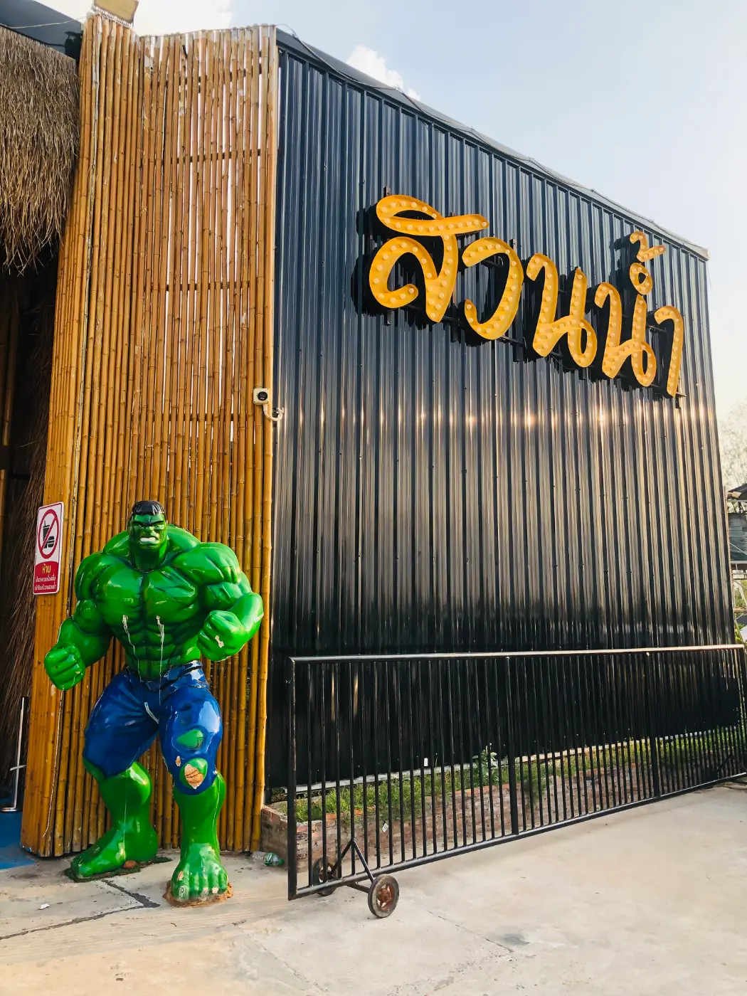 การออกแบบนั้นมีความสวยงามและถ่ายภาพออกมาสวยงาม ด้วยไม้ไผ่เหลืองสื่อว่านี่คือสวนน้ำบ้านไผ่ มีไม้ไผ่รอบกันเลย
