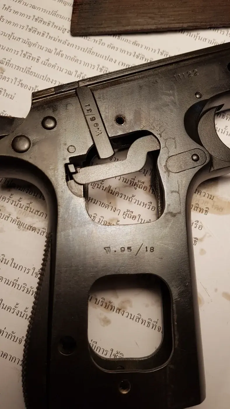 ไม่นานหลังจากการปฏิวัติการปกครองในปี พ.ศ. 2475 ประเทศไทยเริ่มมีนโยบายในการผลิตอาวุธปืนเพื่อใช้ในประเทศล่วงเลยมาจนถึงปี พ.ศ. 2498 ทางกรมสรรพาวุธได้มีการนำปืนพกรุ่นเก่า ปพ.80 มาปรับปรุงใหม่โดยใช้ชื่อว่า ปพ.95 จนกระทั้งในปี พ.ศ. 2503 กรมสรรพาวุธได้นำ ปพ.95 มาปรับปรุงอีกครั้งโดยปรับแต่งให้เป็นแบบ Colt และใช้ชื่อว่า ปพ.95/03 ซึ่งผลิตด้วยมือ