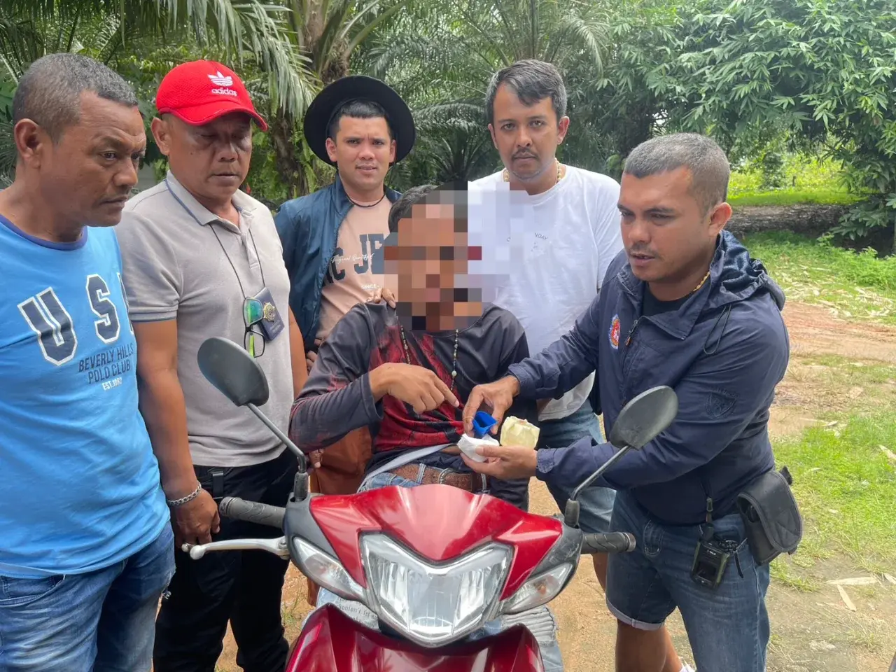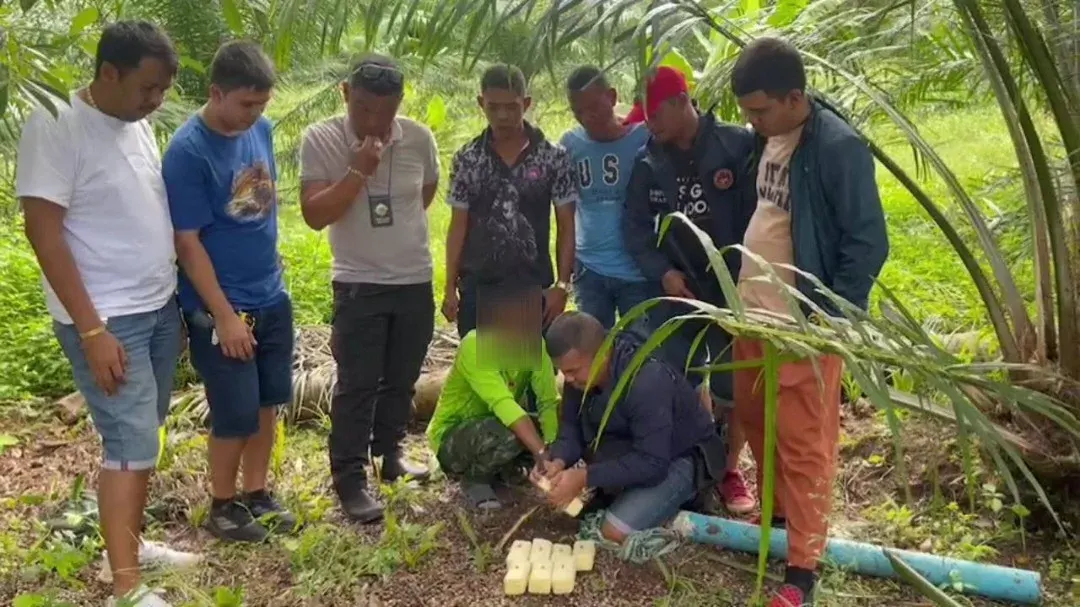 ยังไม่หยุดเท่านั้น ช่วงบ่ายเจ้าหน้าที่เดินหน้าขยายผลต่อ จนนำไปสู่การจับกุม “บังถ้วย” ได้กลางสวนปาล์มขณะนำยาบ้าซุกในท่อพีวีซียาวเกือบ 2 เมตรซุกร่องปาล์ม ในพื้นที่ ม.4 ต.กระบี่น้อย พร้อมของกลางยาบ้าถึง 16,906 เม็ด