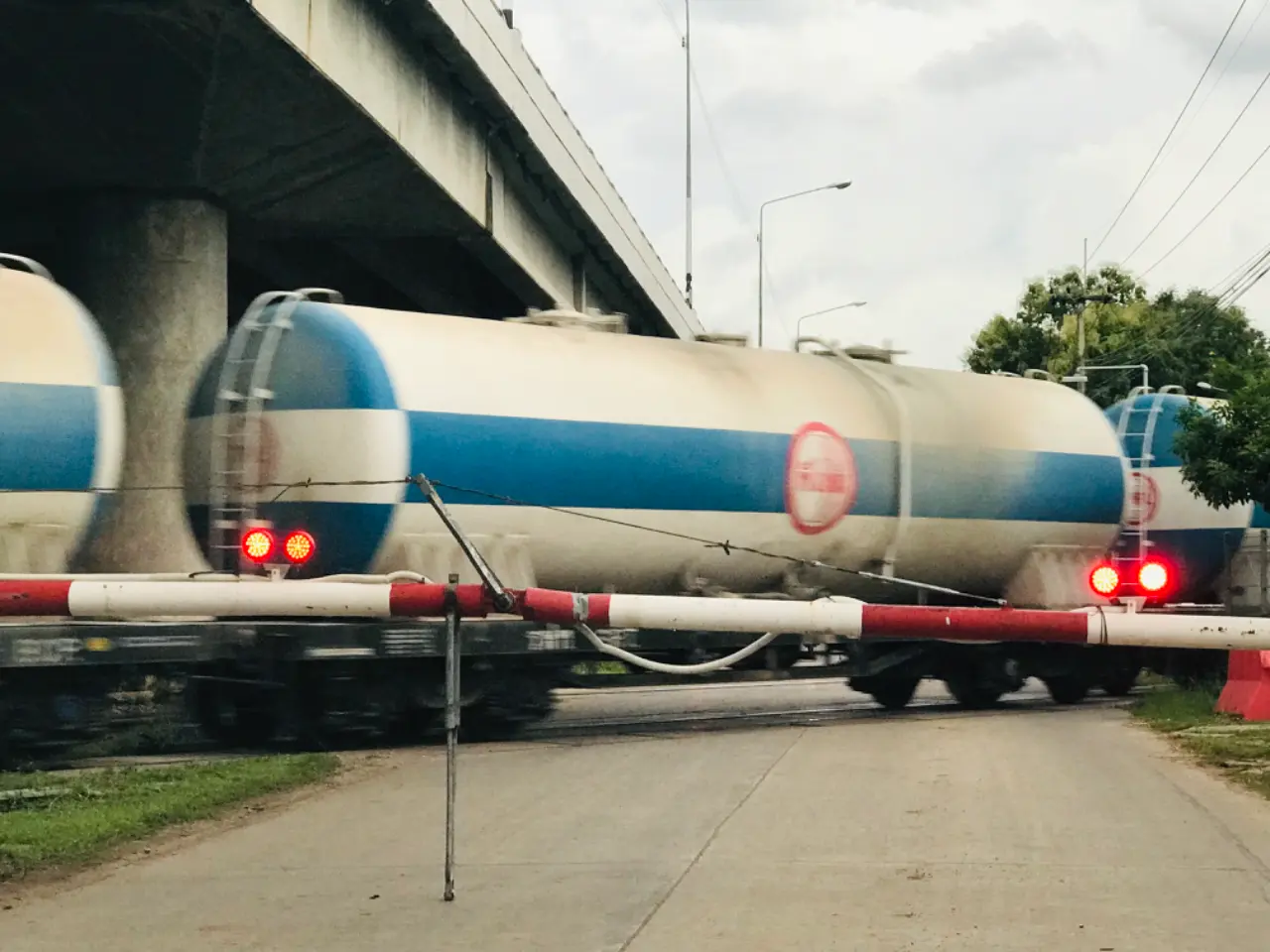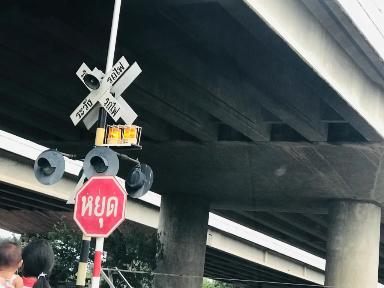 ทางรถไฟ ผ่านไปรถทุกคันจำเป็นต้องหยุด ด้วยแสงสีแดงกระพริบ
