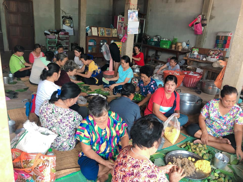 เมื่อเรานั้นห่อเสร็จแล้วจะนำมาเรียงไว้ ในส่วนของแผนกในการนึ่งก็จะตั้งหม้อรอแล้วเพื่อที่จะนำข้าวต้มนั้นไปจัดวาง สีสันในการห่อนั้นคือความสุขในการเว้าพื้นขึ้นบ้านนั้นลงบ้านนี้กันกระจาย เพราะว่าคนเรานั้นหากว่าเจอกันสิ่งที่จะช่วยกันมองหน้ากันคุยแล้วมีความสุขคือพูดถึงคนที่ไม่ได้อยู่ในบริเวณ เราหากว่าได้ยินจงคิดว่าดีแล้วเขานั้นให้ความสำคัญกับเราจริงๆ