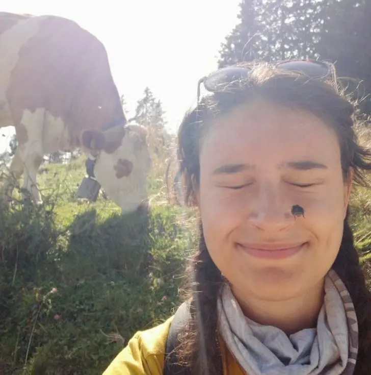 7. มีผึ้งตัวใหญ่ตัวหนึ่งฟาดเข้าที่หน้าฉันในขณะที่ฉันกำลังถ่ายเซลฟี่กับวัวระหว่างกำลังจะเดินป่า