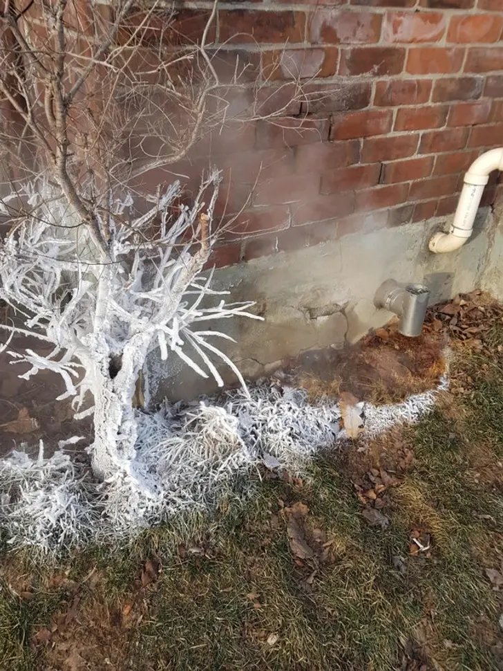 8. วันนี้ที่โตรอนโตมีอุณหภูมิ -20⁰C ไอน้ำจากท่อน้ำร้อนนี้แข็งตัวติดหญ้าและพุ่มไม้ทันที