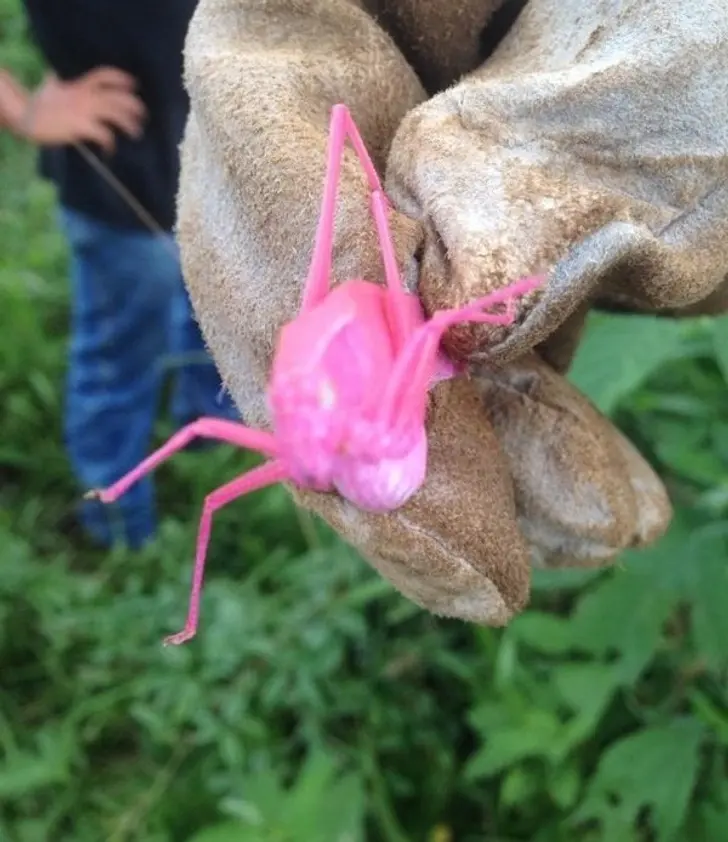 12. เพื่อนของฉันคนหนึ่งค้นพบตั๊กแตนสีชมพูขณะทำงานวันนี้