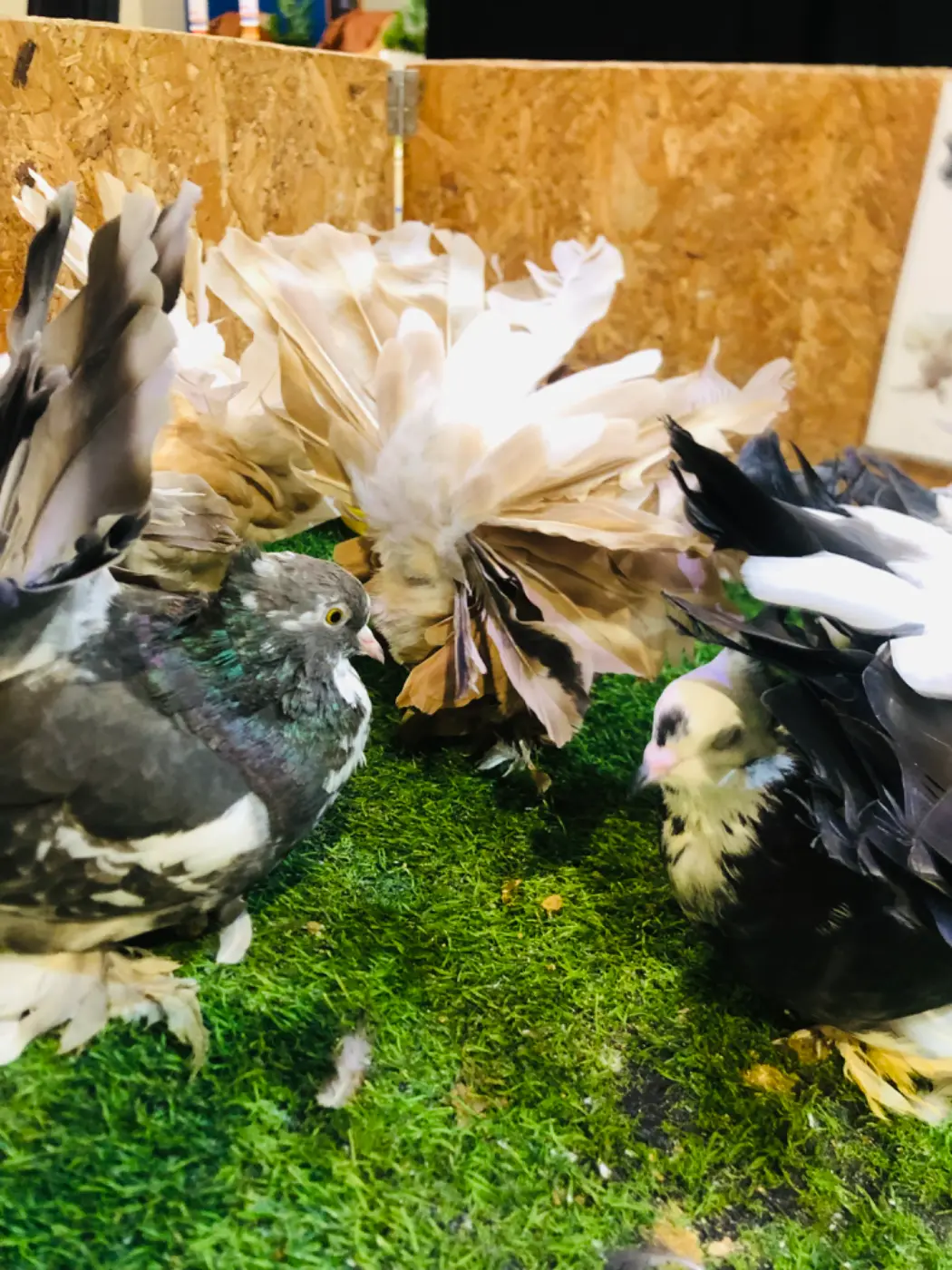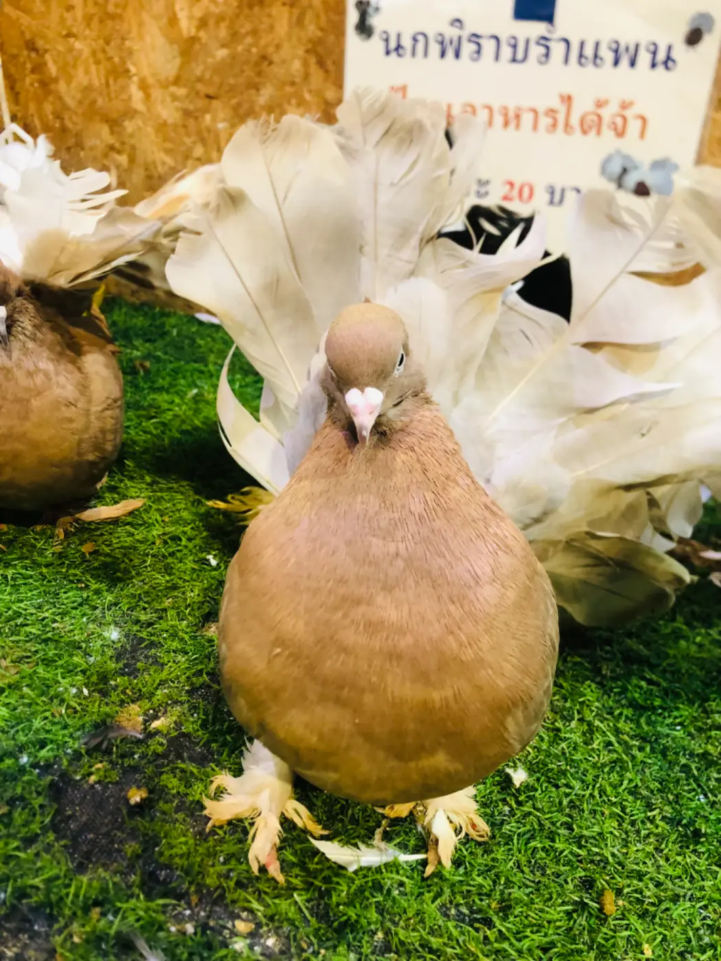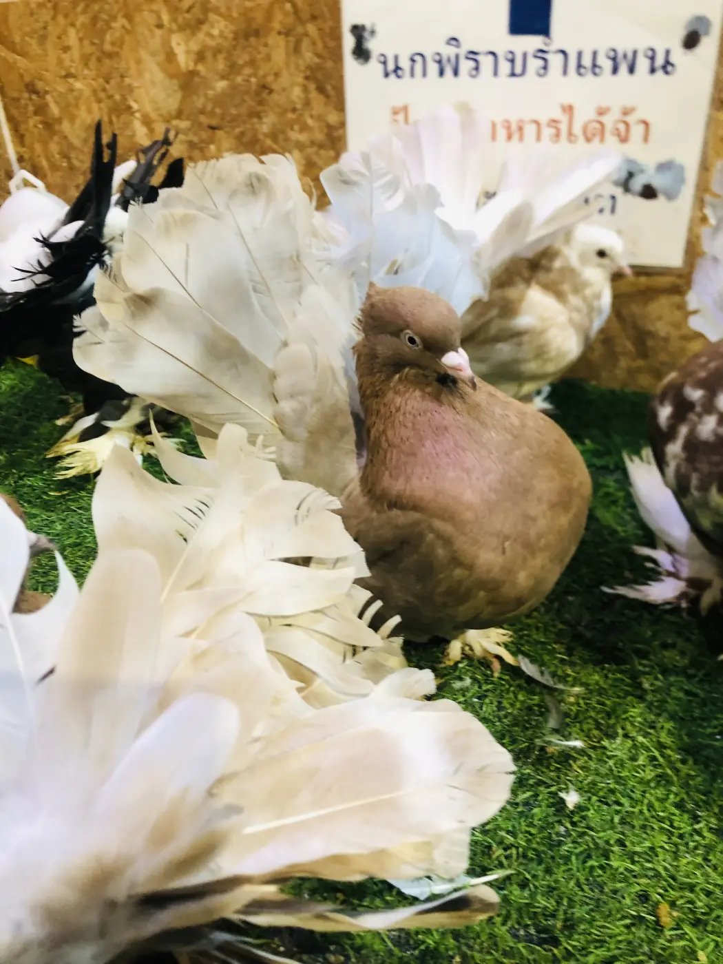เจ้านกพิราบที่หางของเขานั้นบานเหมือนจานและงอก้นไปมา เหมือนประหนึ่งว่านกยูงแม้ว่าจะใช้พื้นที่ไม่เยอะแต่ว่าสวยงามเช่นกัน