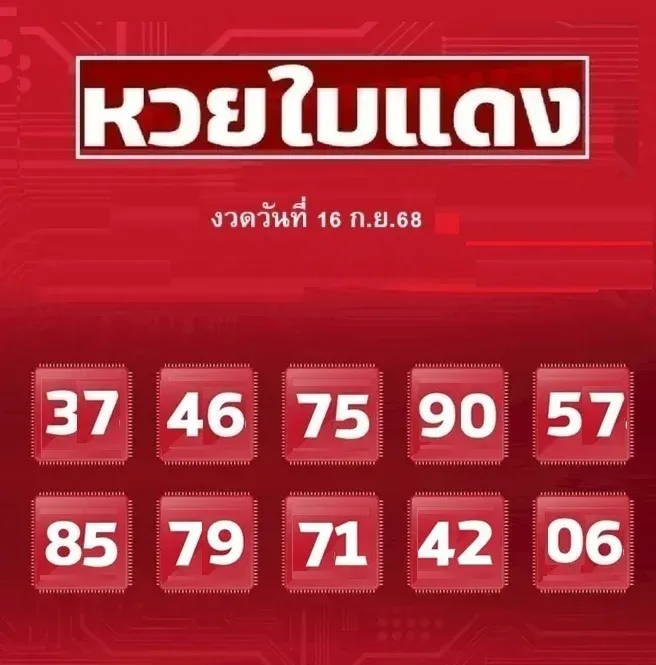 10 เลขฮิต "หวยใบแดง" งวดวันที่ 16 กันยายน 68 มาแล้ว!..อยากรวย ส่องเลย!!