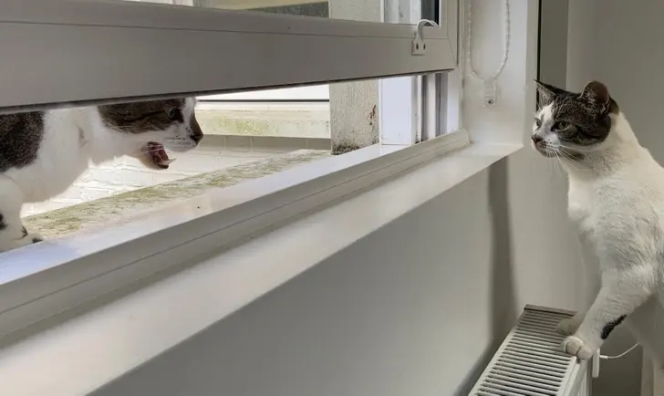 4. แมวของเพื่อนบ้านฉันตัวนี้แวะมาเป็นครั้งคราวเพื่อโผล่หัวเข้ามาทางหน้าต่างและร้องตะโกนใส่แมวของฉัน ซึ่งฉันก็ไม่รู้ว่ามันทำแบบนี้ไปเพื่ออะไร ?