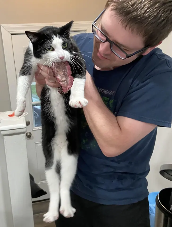 6. ผมจับได้ว่าคนไข้ของเราตัวนี้ มาขโมยแก้มวัวชิ้นหนึ่งในทาโก้มื้อเย็นของเหล่าเจ้าหน้าที่ในคลินิกสัตวแพทย์