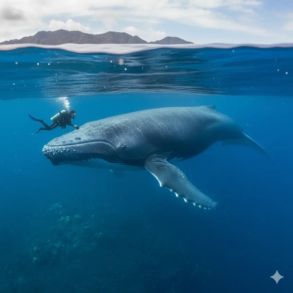 วาฬสีน้ำเงิน (Blue whale; Balaenoptera musculus) คือสิ่งมีชีวิตที่เปรียบเสมือนตำนานแห่งท้องทะเล และเป็นสัตว์เลี้ยงลูกด้วยนมที่มีขนาดใหญ่ที่สุดเท่าที่โลกเคยมีมา ร่างกายอันมหึมาของมันยาวโดยเฉลี่ยถึง 25–30 เมตร และตัวที่ใหญ่ที่สุดที่ถูกบันทึกไว้มีความยาวมากถึง 33.5 เมตร น้ำหนักอาจสูงถึง 200 ตัน เทียบเท่ากับช้างถึงสามสิบกว่าตัวรวมกัน การได้เผชิญหน้ากับวาฬสีน้ำเงินในธรรมชาติจึงเป็นประสบการณ์ที่ทำให้มนุษย์รู้สึกตัวเล็กจ้อยยิ่งกว่าที่เคย