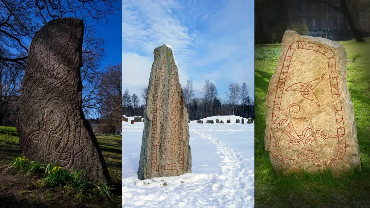 เรื่องราวของอักษรรูนนั้นถูกค้นการจารึกอักษรรูนตั้งแต่ ช่วงศตวรรษที่ 4-5 ซึ่ง สันนิษฐานได้ว่า อักษรรูนนั้นอาจจะถือกำเนิดก่อนคริสตกาล และด้วยหลักฐานการแกะสลักบนอาวุธ แผ่นหิน กระดูกสัตว์ แผ่นไม้ หรืออุปกรณ์เครื่องใช้โบราณต่าง ๆ ตัวอย่างเช่น หินรูนจากยุคไวกิ้งจากอัปแลนด์ ประเทศสวีเดน ตัวอย่างนี้เป็นรูปสัตว์ริบบิ้นแบบ Urnes โดยรูนแกะสลักไว้ภายในขดของหิน
