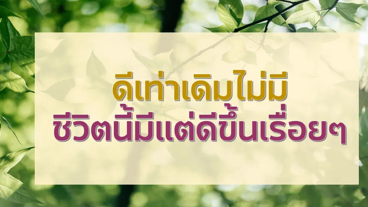 ดีเท่าเดิมไม่มี ชีวิตนี้มีแต่ดีขึ้นเรื่อยๆ