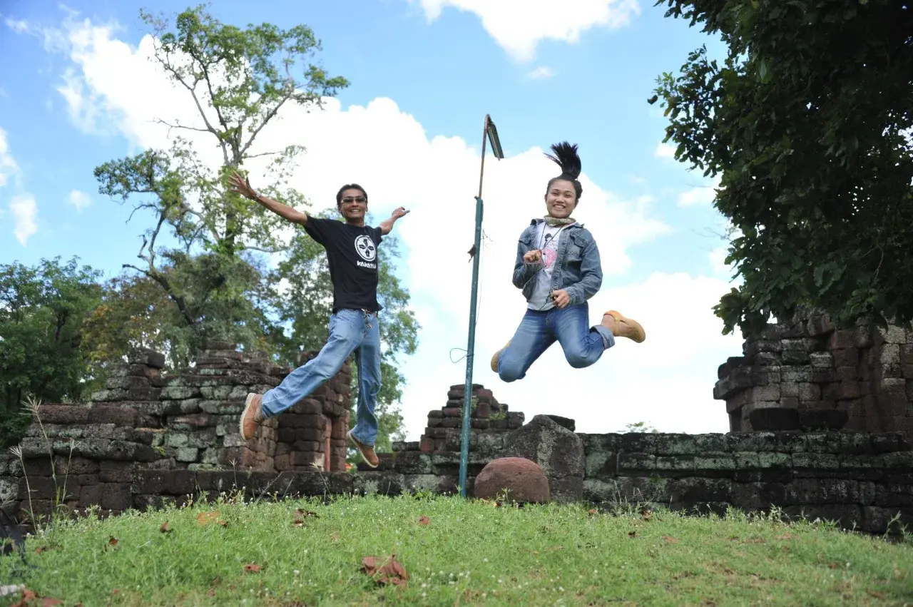 ในส่วนของตรงนี้นั้นเป็นพื้นที่ที่สูงมากจากบ่อน้ำ ด้านหน้าของเรานั้นเขาบอกว่าคือบ่อน้ำศักดิ์สิทธิ์ อากาศดีมาก วิทยากรหันมาเห็นเรานั้นกำลังสร้างความสดใส ด้วยการกระโดดเหนือปราสาทโบราณ ก่อนที่เรานั้นจะเดินเข้าไปชมด้านใน ซึ่งบางปราสาทนั้นไม่สามารถที่จะให้เรานั้นเข้าไปด้านในได้เพราะว่ามีในเรื่องของความชำรุดค่อนข้างมากแล้ว เกรงจะได้รับอันตราย