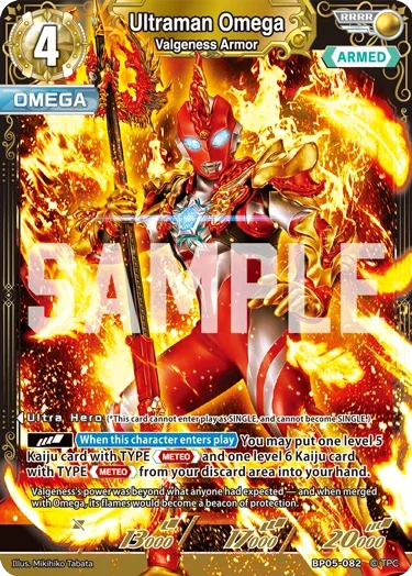 นอกจากในซีรีส์แล้ว วาลเจเนสยังจะถูกนำมาเป็นการ์ดในชุดใหม่ของ Ultraman Trading Card Game ด้วย โดยอยู่ในบูสเตอร์แพ็กชุดที่ 5 “Heroes of the Radiant Dawn” ที่จะวางจำหน่ายวันที่ 31 ตุลาคม 2025 จุดเด่นของชุดนี้คือการเปิดตัวระดับแรร์ใหม่ “RRRR (Quad Rare)” และ Ultraman Omega Valgeness Armor จะได้เป็นหนึ่งในการ์ดระดับพิเศษนี้ด้วย