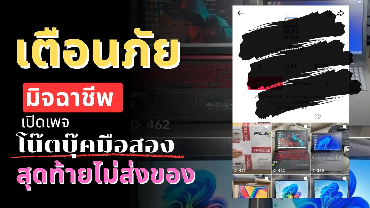 เตือนภัย มิจฉาชีพ เปิดเพจหลอกขายโน๊ตบุ๊คมือสอง