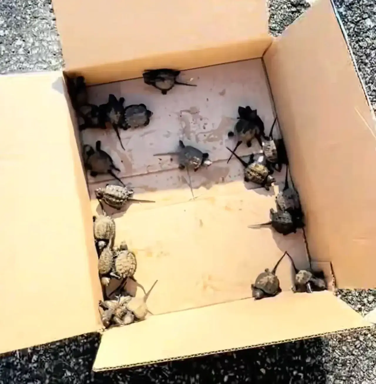 คิดอยู่ไม่กี่วินาที ผมกับแฟนก็ตัดสินใจว่า ต้องช่วยแล้วแหละ ไม่งั้นไม่ทันแน่ ผมเลยรีบวิ่งไปคว้ากล่องพลาสติกที่บ้าน แล้วเราสองคนก็เริ่มภารกิจ “เก็บเต่าน้อย” แบบจริงจัง