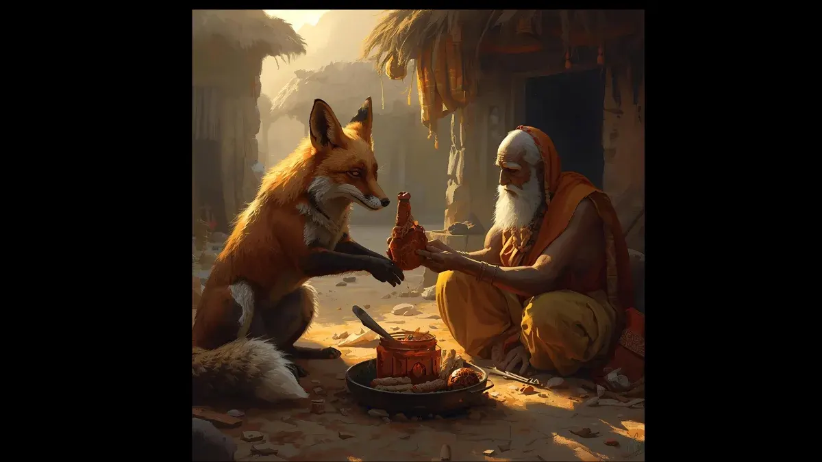 แล้วไปยังสำนักของสุนัขจิ้งจอก แม้เมื่อสุนัขจิ้งจอกกล่าวว่า ท่านยืนอยู่ เพื่อต้องการอะไร? พราหมณ์ก็บอกเช่นเดิม เหมือนที่บอกกับนาก...สุนัขจิ้งจอกกล่าวว่า ดีละ ข้าพเจ้าจักให้อาหารของคนรักษานา ข้าพเจ้านำเอามาไว้ในตอนกลางคืน คือเนื้อย่าง 2 ไม้ เ...้ย 1 ตัว นมส้ม 1 หม้อ ท่านจงบริโภคอาหารสิ่งนี้ แล้วเจริญสมณธรรมอยู่ในป่าเถิด