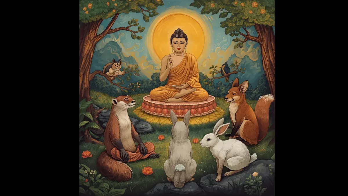 ในอดีตกาล เมื่อพระเจ้าพรหมทัตครองราชสมบัติอยู่ในนครพาราณสี พระโพธิสัตว์บังเกิดในกำเนิดกระต่ายอยู่ในป่า ก็ป่านั้นได้มีเชิงเขา แม่น้ำและปัจจันตคาม มารวมกันแห่งเดียว สัตว์แม้อื่นอีก 3 ตัวคือ ลิง สุนัขจิ้งจอก และนากได้เป็นสหายของกระต่ายนั้น. สัตว์แม้ทั้ง 4 นั้นเป็นบัณฑิตอยู่รวมกัน ถือเอาเหยื่อในที่เป็นที่โคจรของตนๆ แล้วมาประชุมกันในเวลาเย็น สสบัณฑิตแสดงธรรมโดยการโอวาทแก่สัตว์ทั้ง 3 ว่า พึงให้ทาน พึงรักษาศีล พึงกระทำอุโบสถกรรม และสัตว์ทั้ง 3นั้นรับโอวาทของสสบัณฑิตนั้น แล้วเข้าไปยังพุ่มไม้ อันเป็นที่อยู่อาศัยของตนๆ อยู่