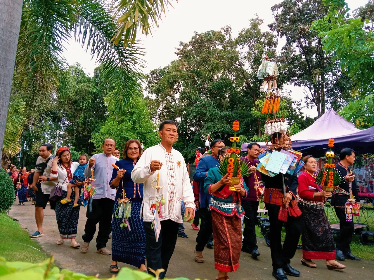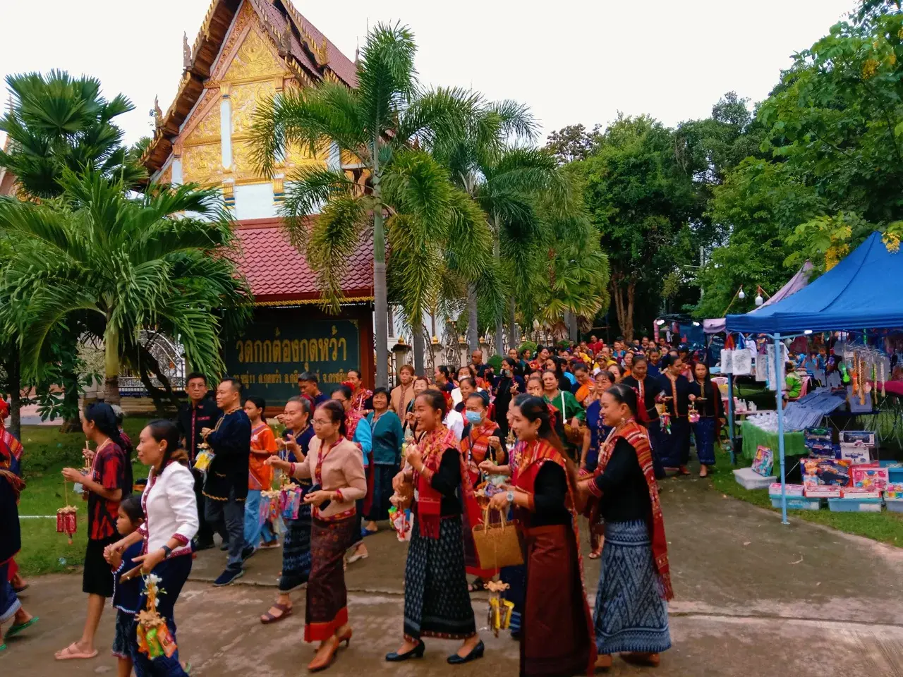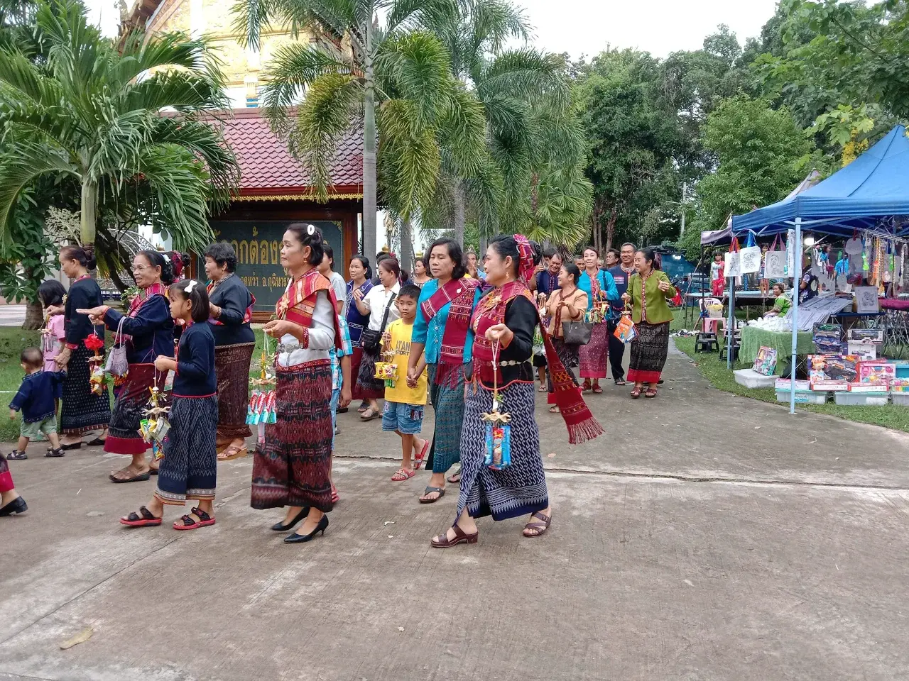 งของความสวยงามที่แตกต่างกัน หากว่าเรานั้นมีการใส่ชุดธรรมดานั้นจะแตกต่างกันเลย เวลาที่เดินขบวนนั้นเราเดินรอบวัดสามรอบนั้นเราจะเห็นถึงความสวยงาม ของแฟชั่นผ้าไหมบ้างผ้าฝ้ายบ้าง การใส่ผ้าซิ่นผ้าไหมกับรองเท้าคัชชูนั้นจะสะดวกสบายมากกว่าทุกอย่างเลย