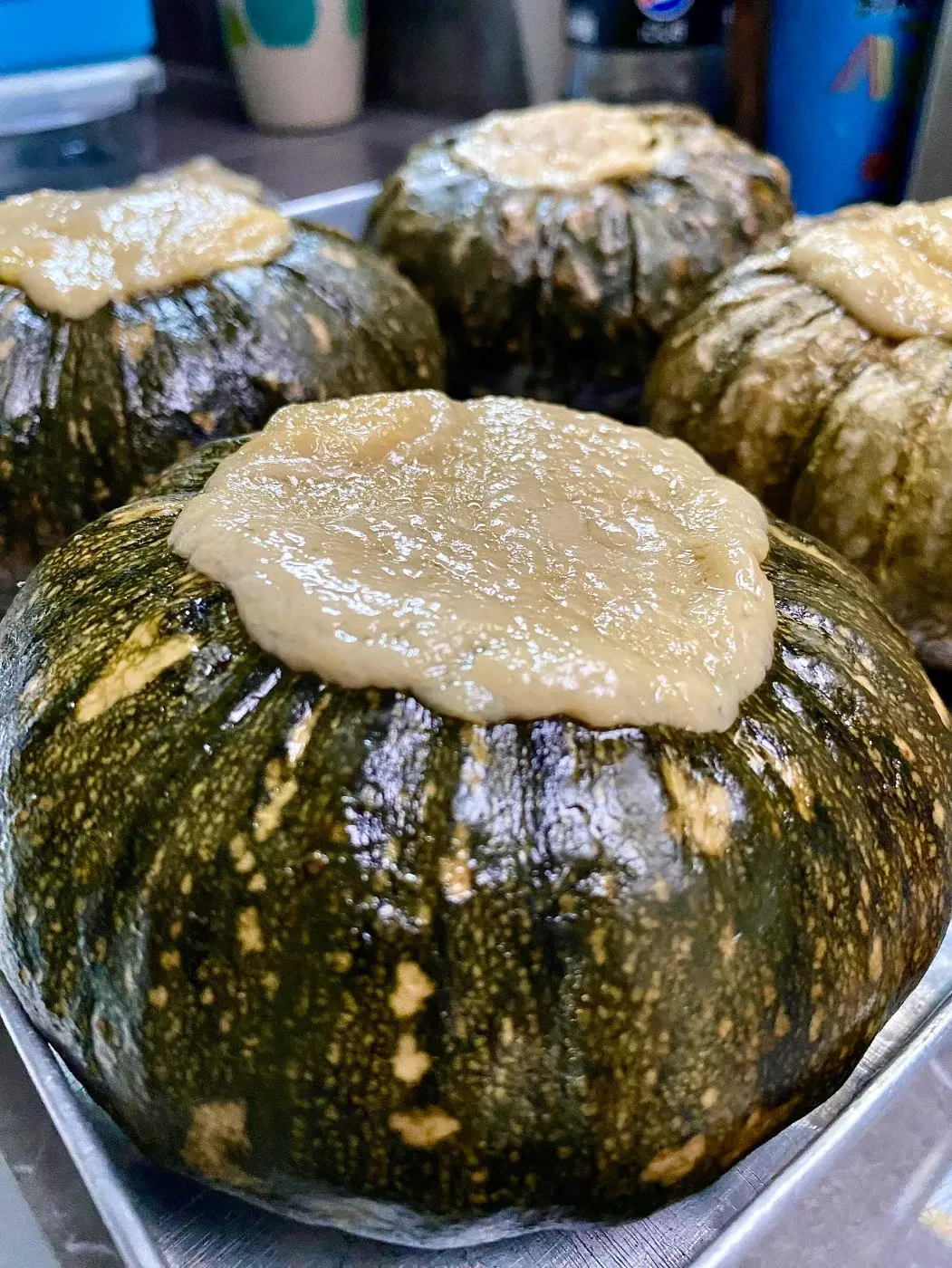 สังขยาฟักทอง ของหวานบ้าน ๆ แต่มีเสน่ห์ตรงการเอาคัสตาร์ดกะทิไปนึ่งในฟักทองทั้งลูก รสละมุนกินแล้วอบอุ่นใจ