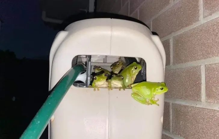 12. ฉันพบสิ่งนี้ขณะกำลังดึงสายยางออกจากที่เก็บ และรู้สึกสงสารที่ไปรบกวนเหล่ากบหน้ายิ้มพวกนี้