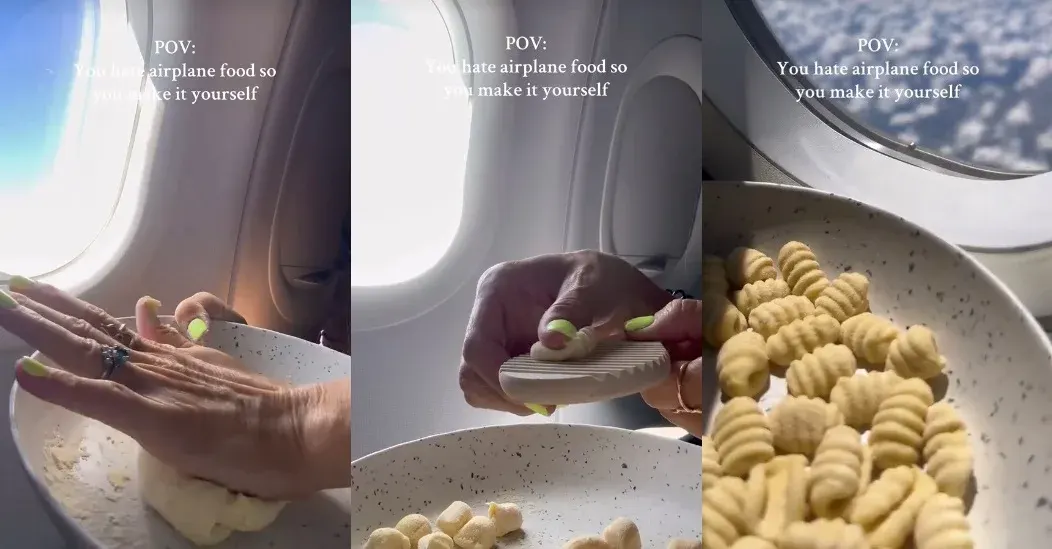 เรื่องราวเกิดขึ้นเมื่อต้นเดือน กันยายน ที่ผ่านมา หญิงสาวรายหนึ่งเธอชื่อ เคธี บรู๊คส์ (Katie Brooks) เป็นอินฟลูเอนเซอร์สายทำอาหาร เธอได้โพสคลิปตัวเองขณะกำลังทำเส้นพาสต้าสด ทุกขั้นตอนตั้งแต่การเตรียมแป้ง เติมน้ำ นวดแป้ง และขึ้นรูปเกรียวที่เรียกว่าเส้น ญ๊อกกี้ (Gnocchi) ซึ่งทุกขั้นตอนที่เธอทำก็ดูเหมือนปรกติ แต่สิ่งที่ไม่ปรกติคือฉากหลังของเธอที่มันแสดงให้เห็นว่า เธอกำลังทำมันอยู่บนเครื่องบิน ในระดับความสูงมากกว่า 30,000 ฟุต ทำให้ผู้คนที่ชมคลิปเหตุการณ์ดังกล่าว ต่างพากับวิพากษ์วิจารณ์ถึงพฤติกรรมที่ไม่เหมาะสมของเธอเป็นจำนวนมาก เช่น