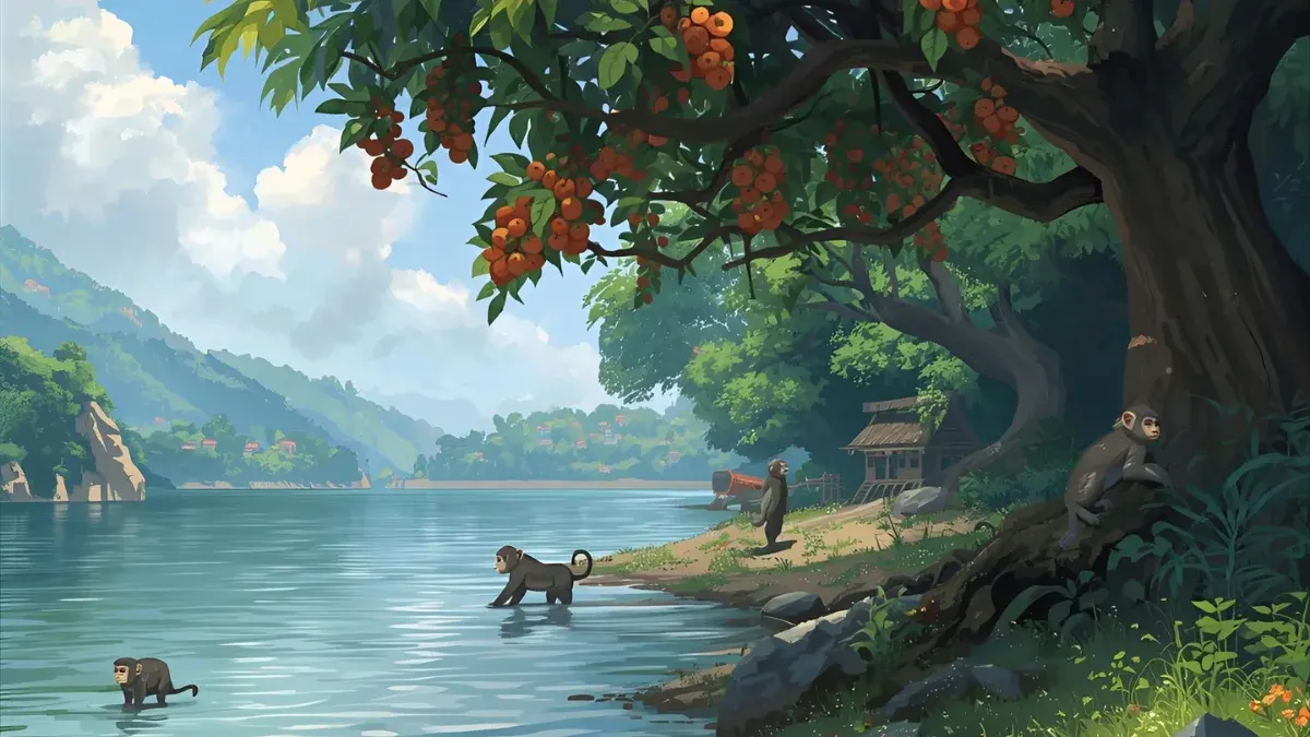 ในสมัยที่พระเจ้าพรหมทัตครองเมืองพาราณสี มีลิงตัวหนึ่งซึ่งแข็งแกร่งสมบูรณ์ราวลูกม้า เปี่ยมด้วยพลังกาย มันใช้ชีวิตโดดเดี่ยวตามแนวฝั่งแม่น้ำ ใกล้แม่น้ำนั้นมีเกาะเล็ก ๆ อุดมด้วยผลไม้ เช่น มะม่วงและขนุน ลิงตัวนี้มีพลังมาก มันจะกระโดดจากฝั่งแม่น้ำไปยังแผ่นหินใหญ่กลางน้ำ แล้วกระโดดต่อไปถึงเกาะเพื่อกินผลไม้ ช่วงเย็นก็กระโดดกลับมาด้วยวิธีเดียวกัน มันทำเช่นนี้เป็นประจำทุกวัน