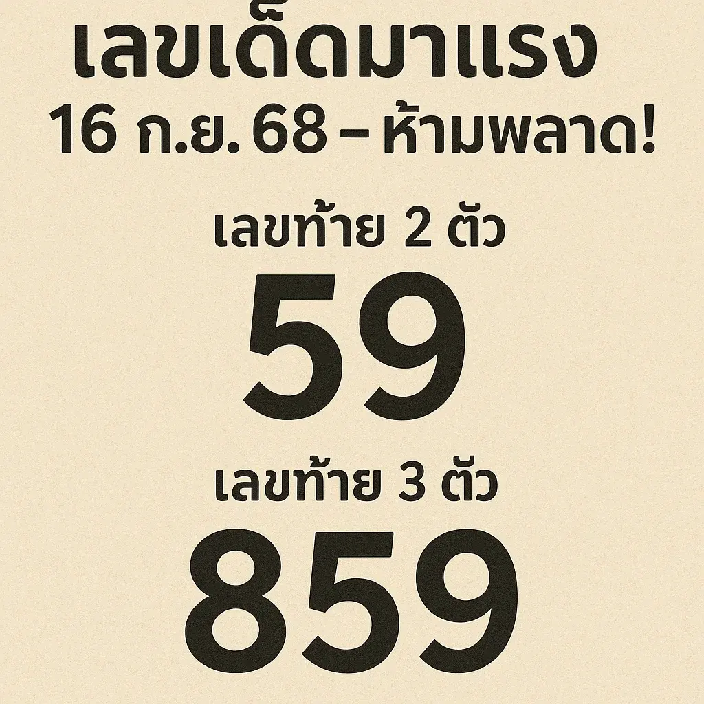 เลขเด็ด 16 กันยายน 2568 หวยมาแรง งวดนี้ห้ามพลาด! 🎯
