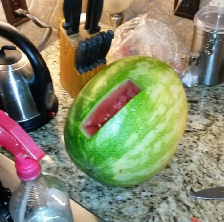 1. ภรรยาของฉัน : 'ฉันอยากกินแตงโม แต่ฉันหั่นทั้งลูกไม่ไหว' และสิ่งนี้ก็เกิดขึ้นหลังจากเธอพูดประโยคนี้จบ