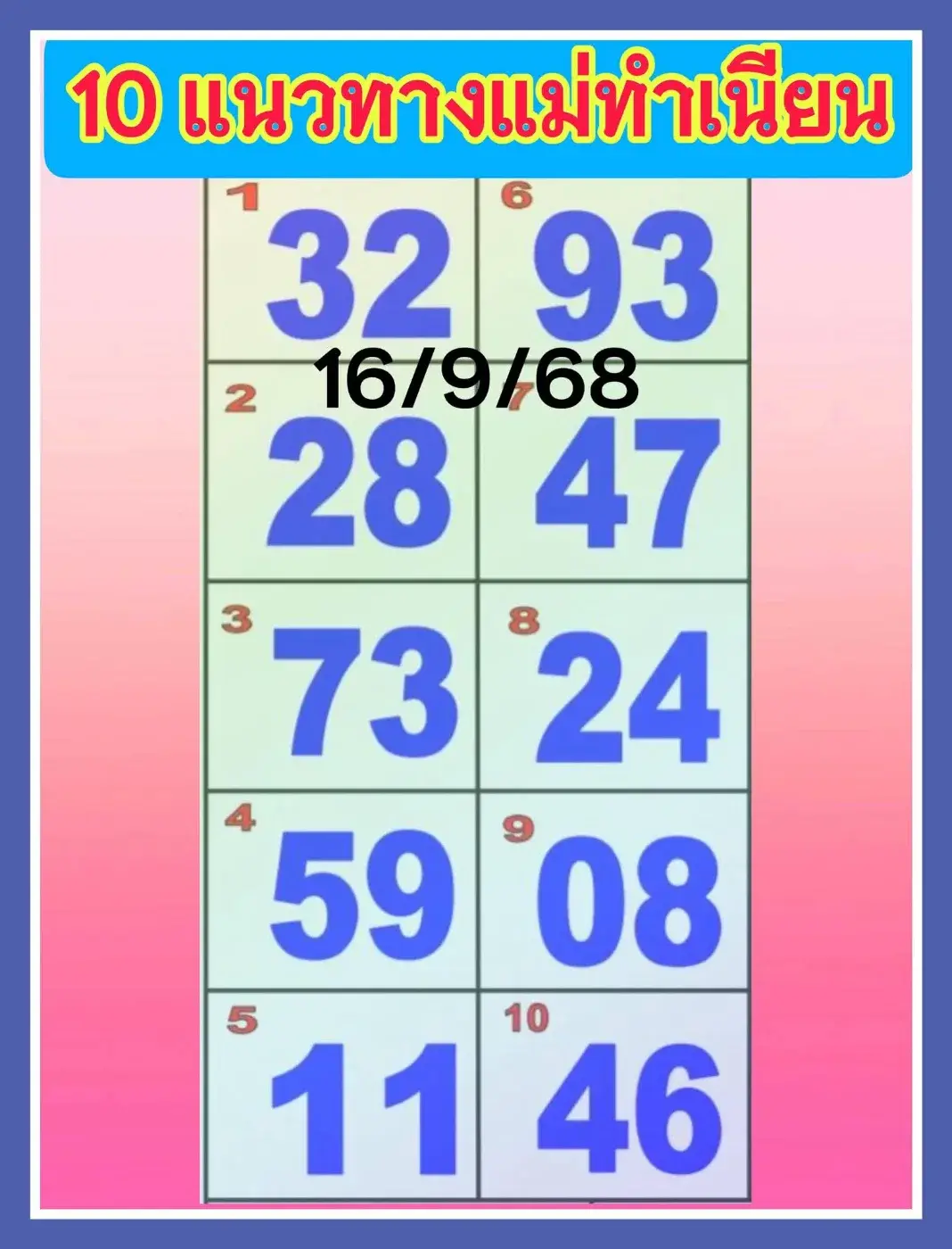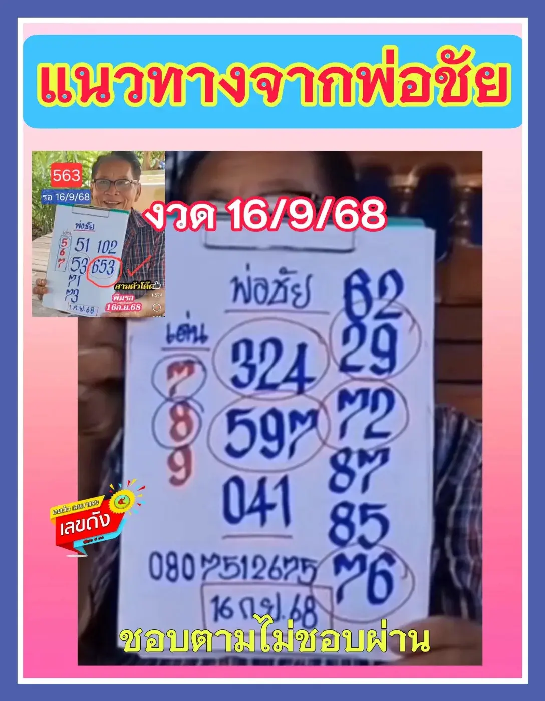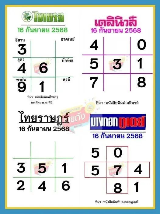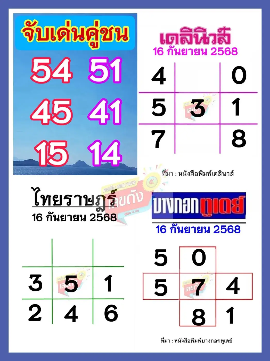 รวมเลขเด็ดเลขดังงวดวันที่ 16 กันยายน 2568
