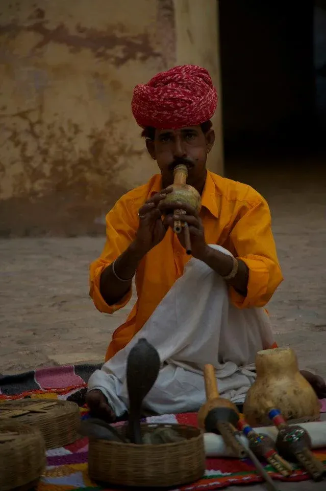 การเป่าปี่ในการโชว์ในเรื่องของการแสดงงูนั้น จะต้องมีปี่เฉพาะของมัน หากว่าเรานั้นนำปี่อื่นมาเป่างูนั้นจะไม่สนใจ เพราะว่าเสียงนั้นไม่เหมือน ด้วยความที่งูนั้นมีการตามในเรื่องของลม เราจะพูดว่างูนั้นไม่มีในส่วนของตาที่สามารถที่จะแยกสีออก เพราะว่าในตาของงูนั้นจะเห็นเพียงสีขาวหรือว่าสีดำ แต่หากว่าสีนั้นสดใสนั่นคือสีดำ งูจะไม่พยายามที่จะเลื่อยไปหา การนั่งอยู่ใกล้งูนั้นให้เรานั้นจ้องตางู งูจะไม่ทำอะไรเรา อาจจะเลื้อยหนีไป