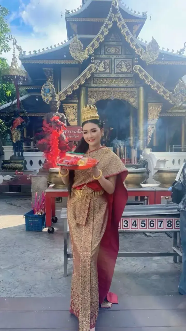 ถือว่าเป็นชุดไทยที่สวยงาม และดูแพงมาก สำหรับ เอ็มมี่โก๊ะ ขวัญใจสื่อ ที่ล่าสุดไปทำบุญที่ จ.เชียงใหม่ และใส่ชุดสืบสานวัฒนธรรมไทยสู่สากล บอกเลยว่างดงามมากเลยทีเดียว
