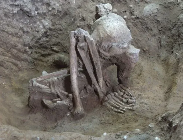 ตัวอย่างการฝังศพของเราจากเอเชียตะวันออกเฉียงใต้เน้นย้ำถึงความเชื่อทางวัฒนธรรมและแนวทางปฏิบัติในการเก็บศพที่คงอยู่ยาวนานอย่างน่าทึ่ง ซึ่งคงอยู่มานานกว่า 10,000 นักโบราณคดีเคยสังเกตเห็นว่าการฝังศพก่อนยุคหินใหม่จำนวนมากในเอเชียตะวันออกเฉียงใต้และจีนตอนใต้ มีลักษณะหลายอย่างที่เหมือนกันในหลายกรณี บุคคลจะนอนขดตัวอยู่ในท่าหมอบหรือท่าทารกในครรภ์ ถูกมัดแน่นอยู่กับที่ และยังมีการเผากระดูกบางส่วนอีกด้วย