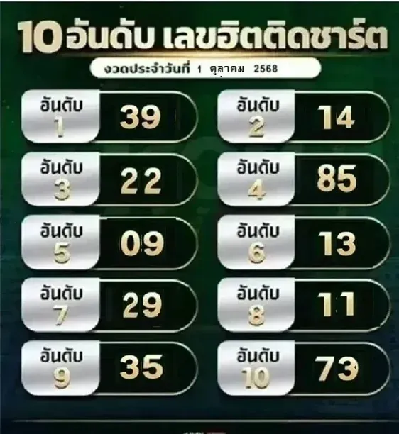 มาแล้ว! "10 อันดับ เลขฮิตติดชาร์ต" งวดวันที่ 1 ตุลาคม 68..เลขไหนฮิต ส่องเลย!