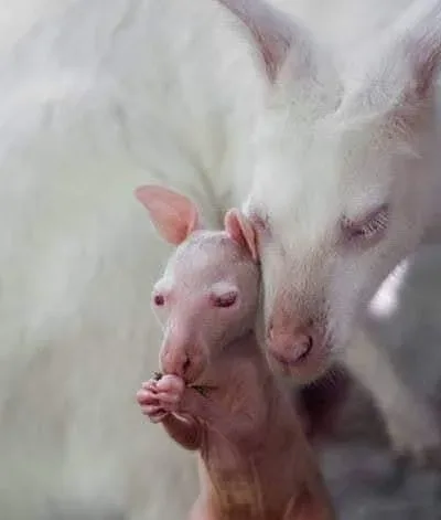 "แม่ลูกจิงโจ้เผือก" หนึ่งในสัตว์เผือกที่เกิดขึ้นได้ยากมากที่สุดในโลก