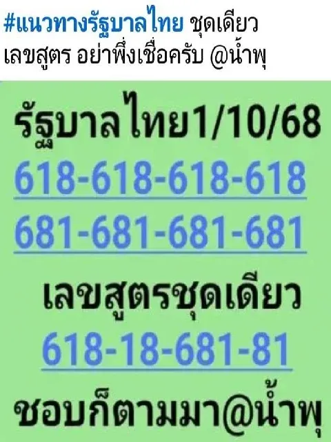 สำหรับแนวทางข้อมูลสลากกินเเบ่งรัฐบาล หวยรัฐบาลไทย ชุด 3 ตัว, 2 ตัว บนและล่าง นั้นมีเลขเด็ดให้คอหวยได้ตามลุ้นกัน พี่น้องคอหวยท่านไหนชื่นชอบหรือโดนใจก็มาเอาไปเสี่ยงโชคกันได้เลย ส่วนท่านไหนที่ไม่ชอบก็ผ่านไปก่อนเลยจ้า.....